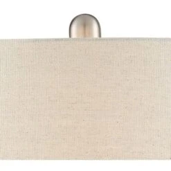 Charge a phone or small electronic device easily with the Simon table lamp set. The two matching table lamps feature a sleek modern design in a smooth brushed nickel finish. Topped with empire lamp shades. Each lamp has a 8″ square riser.