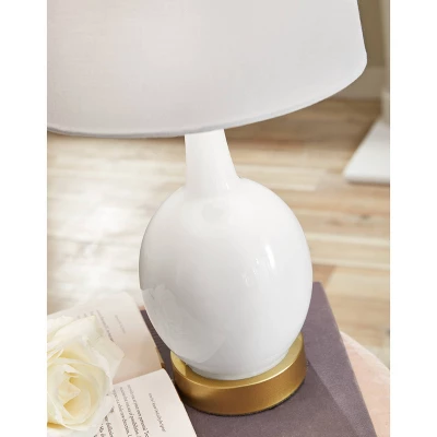 This glass table lamp is the perfect combination of form and function, providing lighting and chic style to any interior. The curvaceous white lamp is crafted for modern flair and topped with a fabric shade. Table lamps are the perfect way to spice up your room, all while providing warm ambient lighting to set the mood. Brighter, well-lit spaces always tend to look larger, smarter and so much more visually appealing. With our wide variety of table lamp shapes, sizes and styles, we’d say your future is definitely looking bright. The trusted source for stylish furniture, lighting, rugs, accessories and mattresses for every taste and budget, our wide assortment brings your space to life with furniture and decor that show off your style personality.