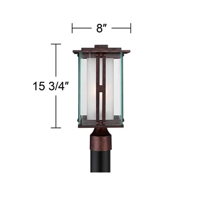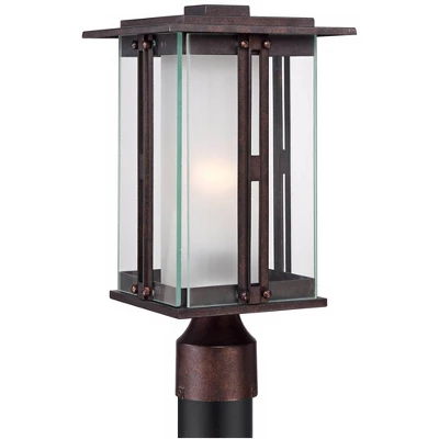 Bring stylish illumination to your yard or driveway with this outdoor post light from the Fallbrook collection. It comes in a sturdy steel frame with a rich bronze finish and features an intriguing double glass design. A frosted glass inner diffuser surrounded by a rectangular clear glass outer shade for an eye-catching dimensional look. A modern update of classic Mission style lighting.