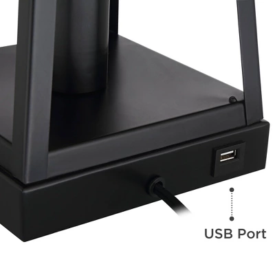 Franklin Iron Works Kacey Industrial Table Lamps 25 1/4″ High Set Of 2 Dark Black With USB Charging Port LED Nightlight Peanut Shade For Bedroom Desk