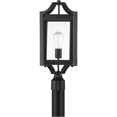 The Rockford collection by Franklin Iron Works offers a transitional style with a rustic touch. This outdoor post light comes in a black frame that holds clear beveled glass panels in between the slats. Use it to illuminate a walkway, pathway, driveway, or side area of the house. A decorative light bulb in a charming vintage Edison style is included with this fixture.
