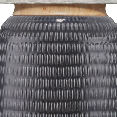 Add a comforting glow to any space in your home with this tabletop lamp. Beautifully crafted by artisans of ceramic, its base features a patterned surface covered in a rich vibrant reactive glaze, wood accent and is topped with a smooth linen shade. Whether you’re brightening up your reading nook, bedroom or adding fresh light to your living room, this lamp is sure to provide the warm light you desire.