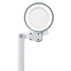 - Lightweight portable lamp hooks to any table or desk edge