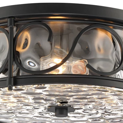 Create a look inspired by classic European tastes with this traditional outdoor flush-mount ceiling light. A matte black finish adds charm and class to blend in with many existing decor styles. Hammered glass uplifts the look to add texture and stunning diffusion of the light within.