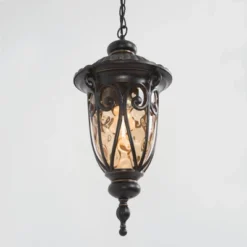 - Bronze finish. Sturdy die-cast metal construction. Seeded glass panels. Wet location outdoor rated.